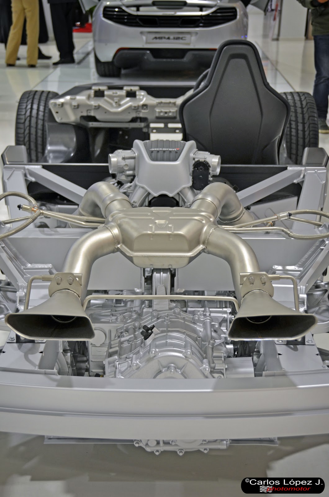 El MP4-12C, cuenta con chasis de fibra de carbono "monocasco", motor de aluminio y un peso de unos 1301 kg. en seco, que hacen de este gran deportivo de 3.8l., V8 bi-turbo y 600 cv., con una velocidad de 330km/h, un duro y gran adversario a batir.