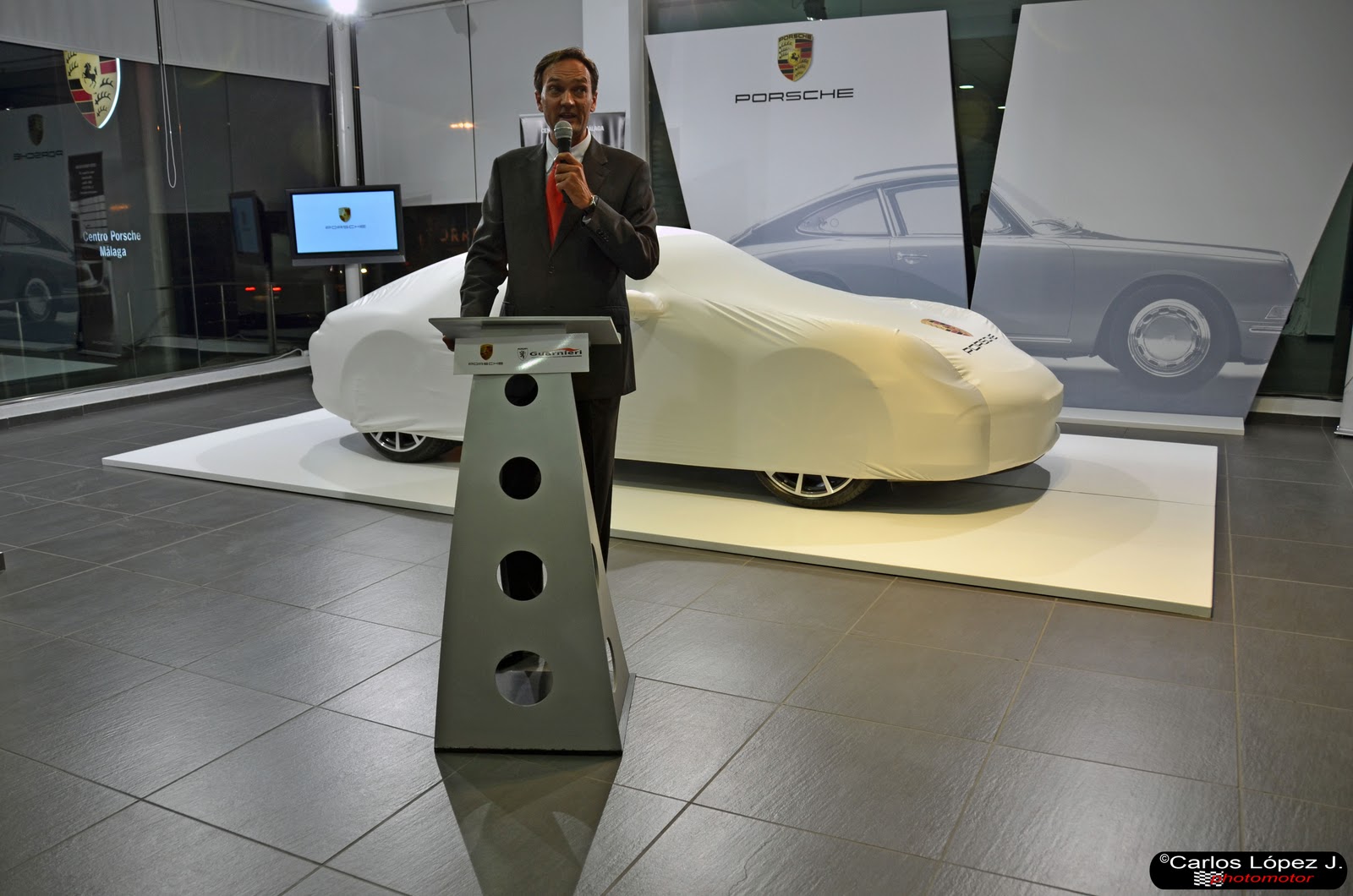 Bajo la atenta mirada de Mario Guarnieri (Consejero Delegado del Grupo Guarnieri Concesionarios), responsables de Porsche España e invitados (entre ellos medios de prensa y clientes), Rafael Franquelo (Jefe de ventas de Centro Porsche Málaga), dio a conocer con un discurso antes de su destape, el nuevo 911.